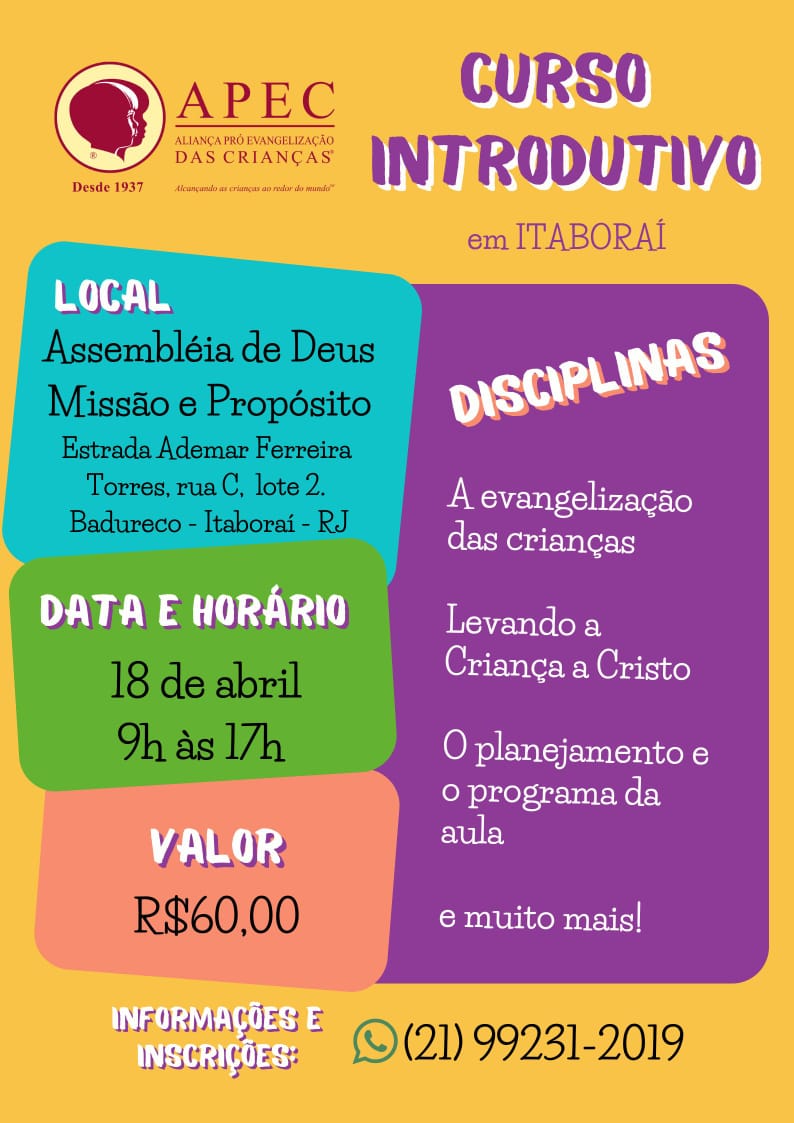 Igreja Assembleia de Deus Missão e Propósito. Estrada Ademar Ferreira Torres, rua C, lote 2. Badureco - Itaboraí - RJ